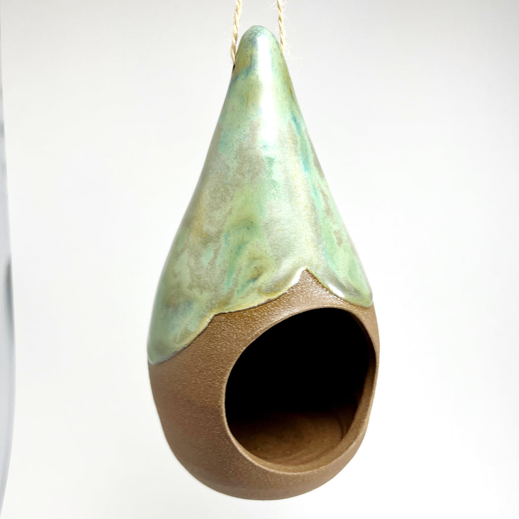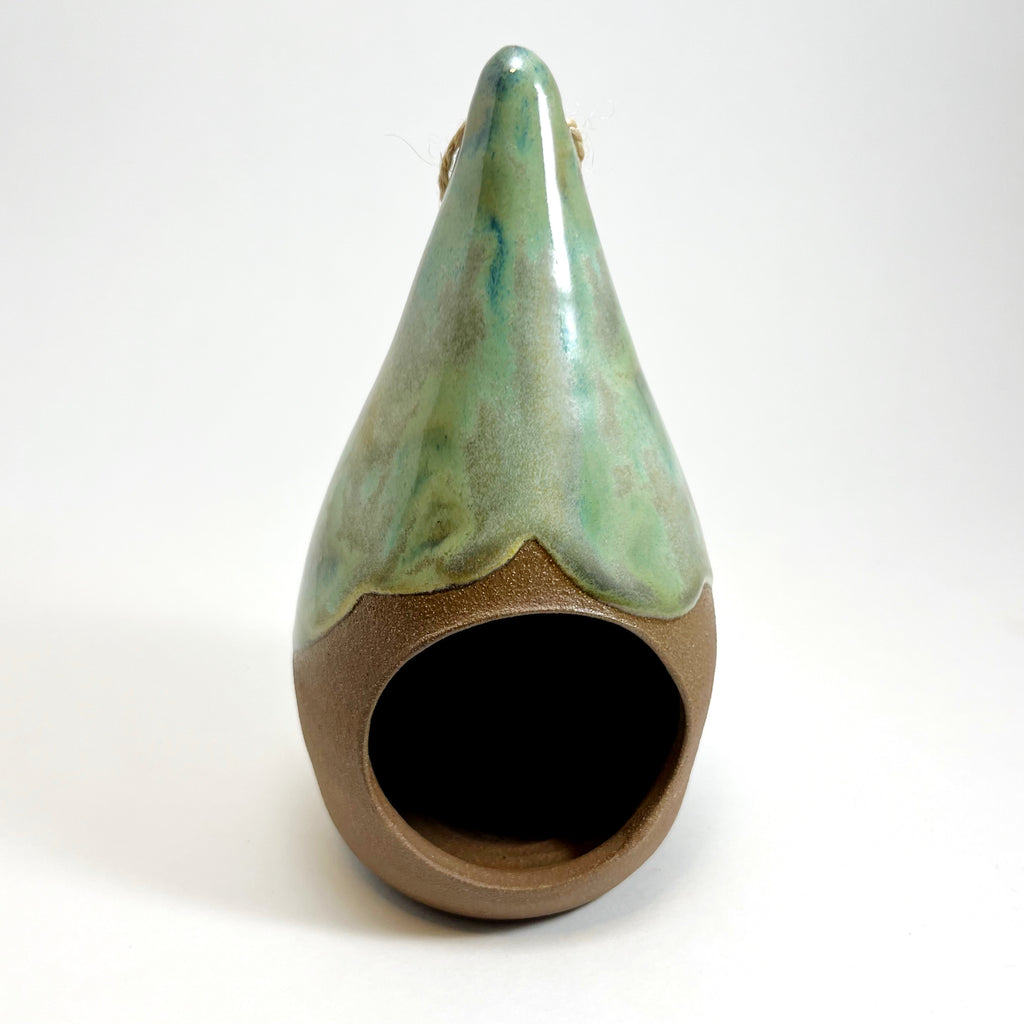 I love spending time in my gardens - both indoors and out. This house is thrown on the wheel and hand finished with a carved opening, and it can be hung or set either outside or in your indoor jungle. Real bugs may use this house, but it’s also the perfect spot for any number of magical creatures and air plants love to hang out here, too.