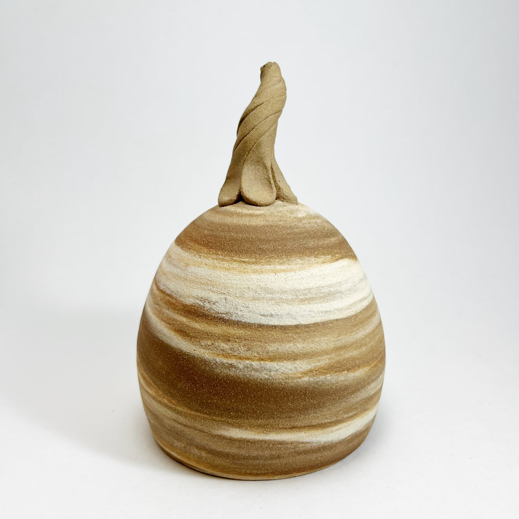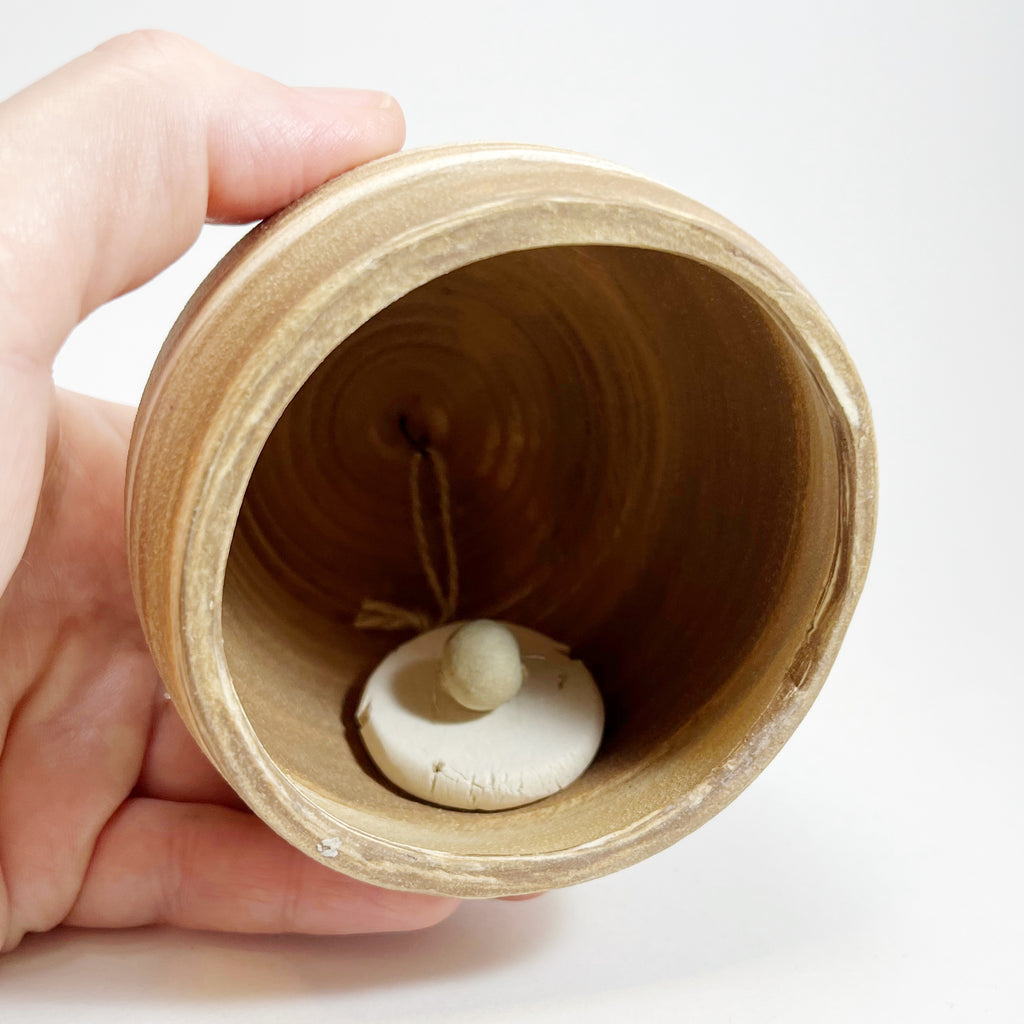 Fall is the season of golden light and delicious harvests! Celebrate all of autumn with this handmade pumpkin pottery. Each piece is thrown on the wheel and then a hand-sculpted stem is added. A clapper is added and I've heard a baby Dracula gets it wings every time you ring your pumpkin bell. Or something like that.
