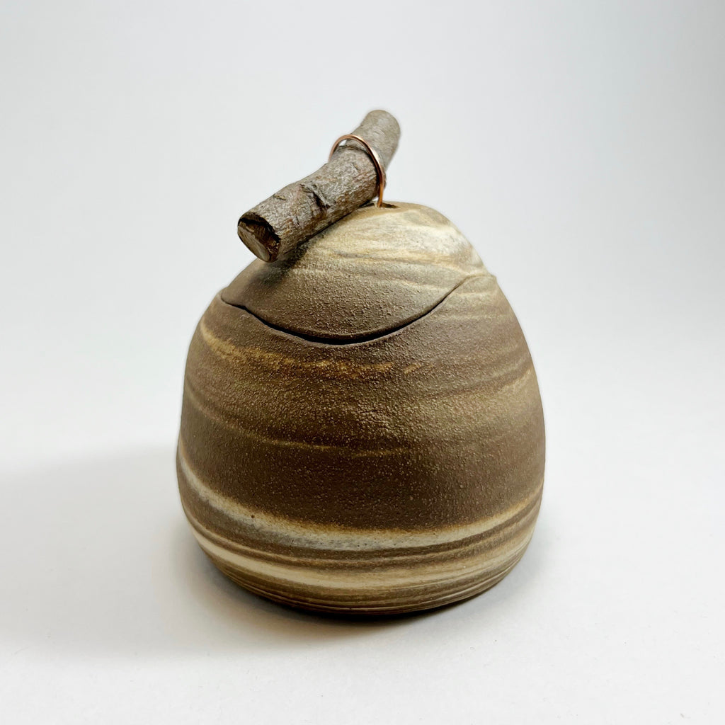 Is there anything sweeter than a small jar to hold your most precious treasures? This handmade rock jar has been perfectly crafted to keep safe any little thing you want to cherish. Thrown on the wheel, each piece is then altered and cut to create a jar. The lids are fitted with the best pieces of fallen wood that the forests around the studio have to offer. These jars are food safe so you can also keep some snacks handy if need be.